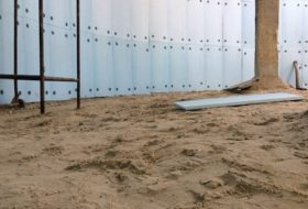 После отсыпки песка, его хорошо укатывают и утрамбовывают. Причем утрамбовка идет по слоям, чтобы сделать песок плотнее и ровнее.