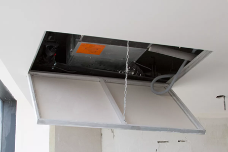 6. Универсальность применения. Ревизионные потолочные люки подходят для установки в различных типах помещений: жилых домах, квартирах, офисах, производственных помещениях, медицинских учреждениях. Они могут быть установлены как в подвесных, так и в натяжных потолках.