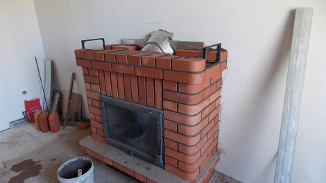 Зверху на топки викладається цегляна плита. Вона повинна знаходитися «як в будиночку». Після його формування встановлюють димохід.