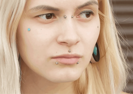 - Anti-eyebrow — пирсинг под глазом по дуге скулы, часто с маленьким шариком.