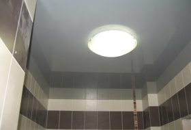 При установке натяжных потолков в ванной комнате, туалете или на кухне первой следует укладывать плитку.