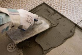 Плитку можно укладывать на основание при помощи цементного раствора, который состоит из стандартных компонентов.